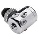Five medium pressure ports, including a protected 5th 3/8" UNF port with bumper guard, are fed via a parallel-mounted rotating turret, letting hoses sit clean, logical and snag-free. Dual angled high-pressure ports optimise alignment for compact transmitters and tidy routing for dive electronics from Oceanic. A double-swivel primary hose at both 1st and 2nd stage liberates head movement, reduces torque, and keeps fatigue and mouth-pull to a minimum.