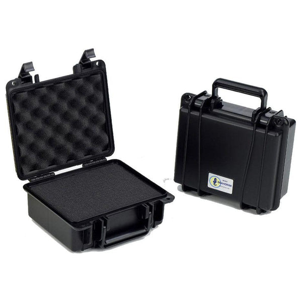 Watertight, Airtight, Rustproof, Dustproof and Crush Resistant. Automatic pressure purge system. O-Ring seal. Moulded-in padlock holes (fits standard size Masterlocks). Available with or without multilayer protective cubed matrix Accuform Foam. Latches are available with keyed chrome metal locks or plastic non-corrosive locks. Chemical and UV resistant. Non-Magnetic without optional metal locks. This case will fit in overhead bin of most major airlines. All cases come with Seahorse's Unconditional Lifetime Guarantee. Inside Dimension L 24.13 cm ; W 18.66 cm ; H 10.41 cm Outside Dimension L 27.38 cm ; W 24.76 cm ; H 12.26 cm