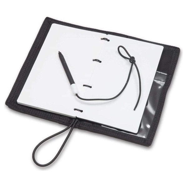 It's a small ring binder, waterproof and is small enough to fit into a drysuit leg, or BCD pocket. The clear plastic storage pocket on the back is a great place to store written dive tables, or anything that needs to be referred to during a dive such as custom deco schedules.