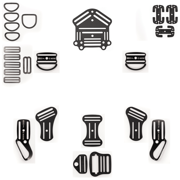 - The plates are made from hard-coated aluminum, the waist buckle is made from injection-molded Delrin.