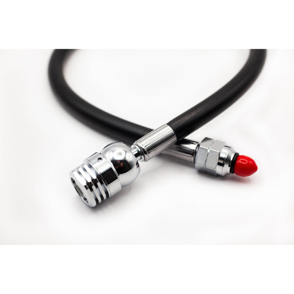 These hoses are made by Yuhsin dive system for DC Marine and feature a lovely high-quality rubber hose with chrome fittings on each end.